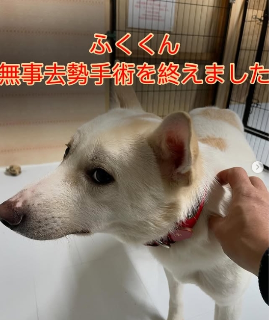 2025/03/19 手術のご報告 今日ふくくんが無事去勢手術を終えました。沢山の方の力添えのお陰で心配していたパニックなどの事態には至らずスムーズな日帰り手術となり関係者皆ホッとしています。ふくがほんとによく頑張りました。麻酔のついでに今までできなかった首輪の装着と爪切りをしていただきました。ありがとうございました。 キラリと光る首輪を勲章に彼の次のステージへ進めてやりたいと思います。 #ふく君 現在、家族を待っているわんこたち ポノちゃんみこちゃんこきちくんだいきち君ティムちゃんふく君モイくん