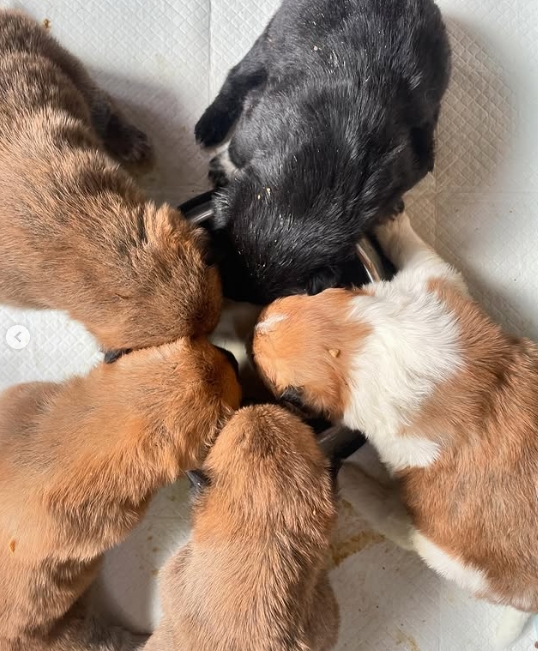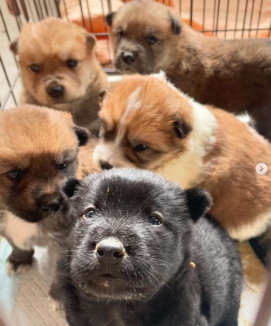 2025/04/25 あらためまして昨日保護の5兄妹です! 男3 女2離乳食とミルク よく食べます! 今日は病院で健康チェックです。 現在、家族を待っているわんこたち Newちびっ子4頭みこちゃんこきちくんだいきち君ティムちゃんふく君モイくん