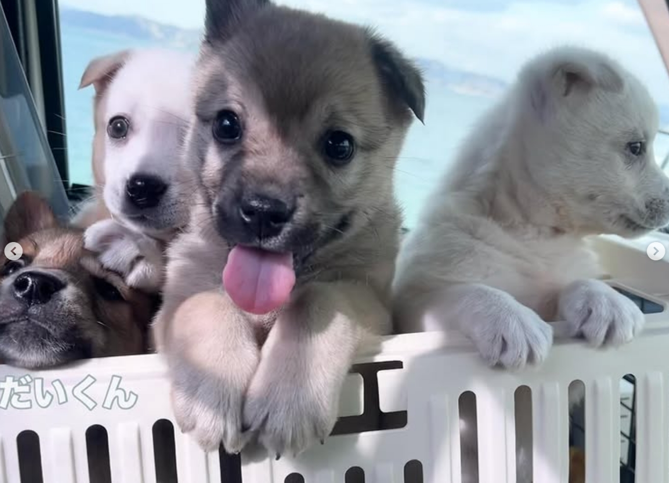 2026/01/29 もちくんおうち決定🌸 チビちゃん達今日はワクチン接種してきました。 車に慣れてないので行きはギャーギャーピーピー言ってましたが、病院へ着くとみんな注射も怖がらず先生が上手にしてくれるのもあって(気づいてない?)いい子でした。体重は3.5キロ前後で保護時から約倍になりました。良く食べ良く寝ています。ごまくんだけ少し小さめです。お腹の調子も整い元気いっぱいです🐶🐶🐶🐶 里親御検討されている方はホームページのメールフォームよりご連絡お待ちしております。 #ごまくん #だいくん #まるくん 現在、家族を待っているわんこたち つくしちゃんみこちゃんこきちくんだいきち君ティムちゃんふく君モイくん